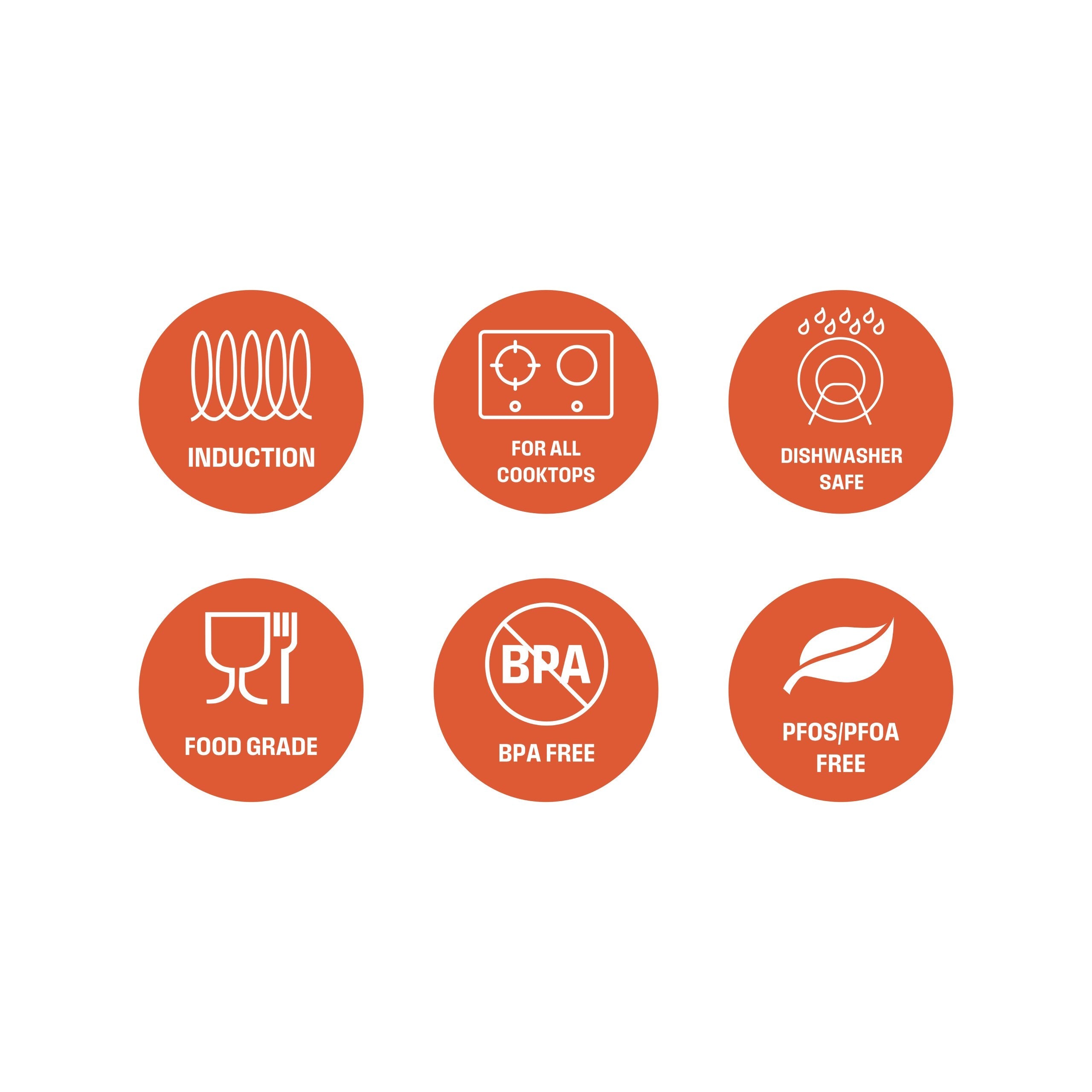 Suitable for induction and all other heat sources (oven up to 160 degrees)