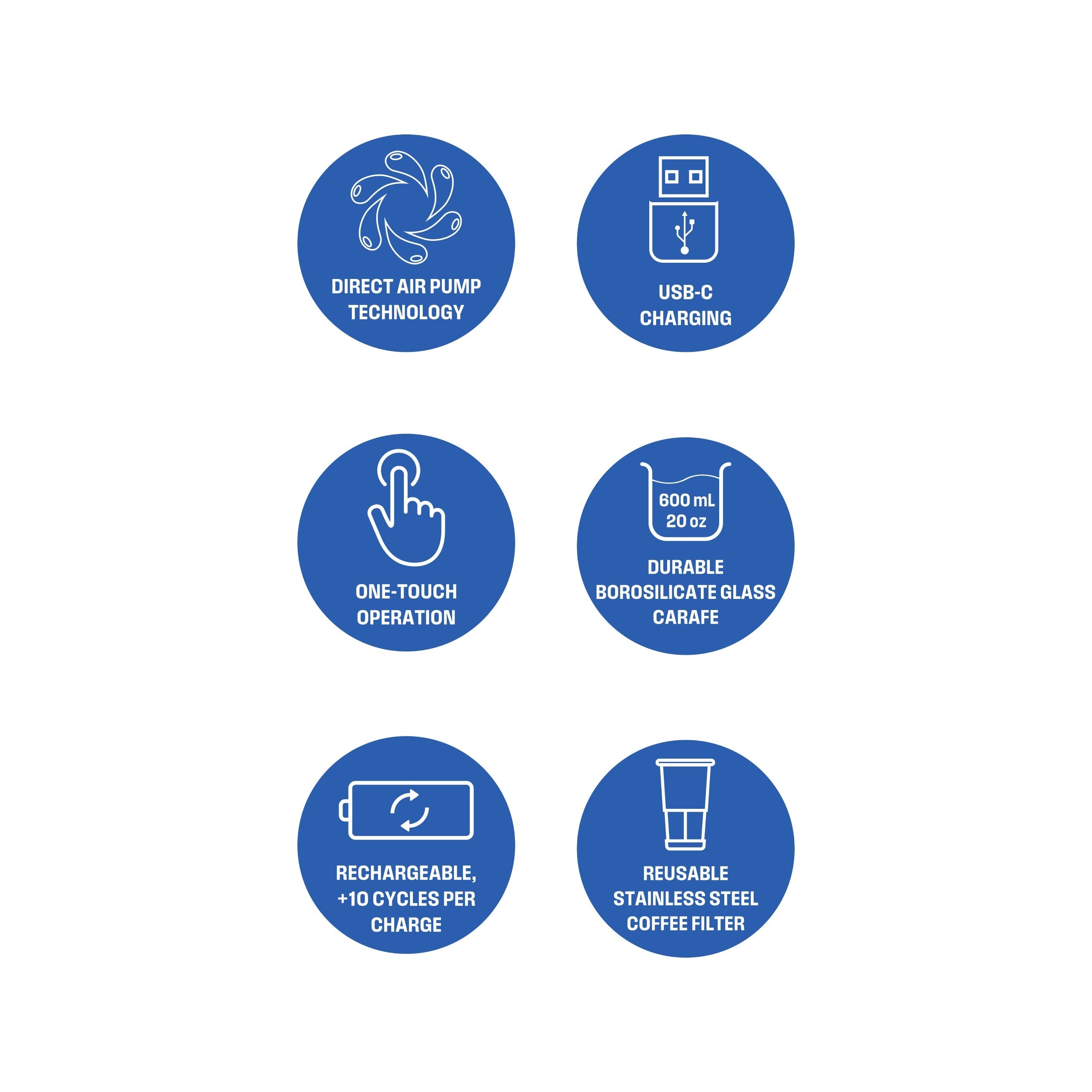 Long-Lasting Battery Life: Enjoy multiple brewing cycles on a single charge with the powerful 1200 mAh battery. The cordless design eliminates the need for power outlets, giving you the freedom to brew your coffee wherever you are. The rechargeable battery ensures sustainability and cost-effectiveness, making it an eco-friendly choice for coffee lovers.