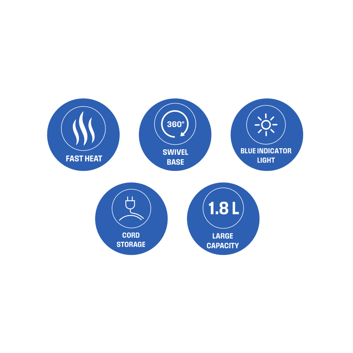 Generous 1.8L Capacity: Boil enough water for family gatherings or solo indulgences. The large capacity is perfect for tea, coffee, instant noodles, and more, ensuring you have plenty of hot water for any occasion.