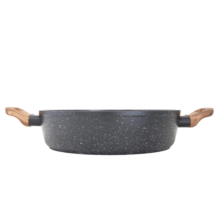 Crafted from forged aluminum with a 3-layer marble coating, this special edition cookware ensures even heat distribution for perfectly cooked meals. The scratch-resistant surface provides lasting durability, while the riveted silicone-coated handles offer a secure and comfortable grip with a chic wood-look finish. Cooking has never been easier with its dishwasher-safe feature, making cleanup a breeze after enjoying your favorite dishes. The transparent glass lid allows you to monitor your food as it cooks, ensuring the best results every time.