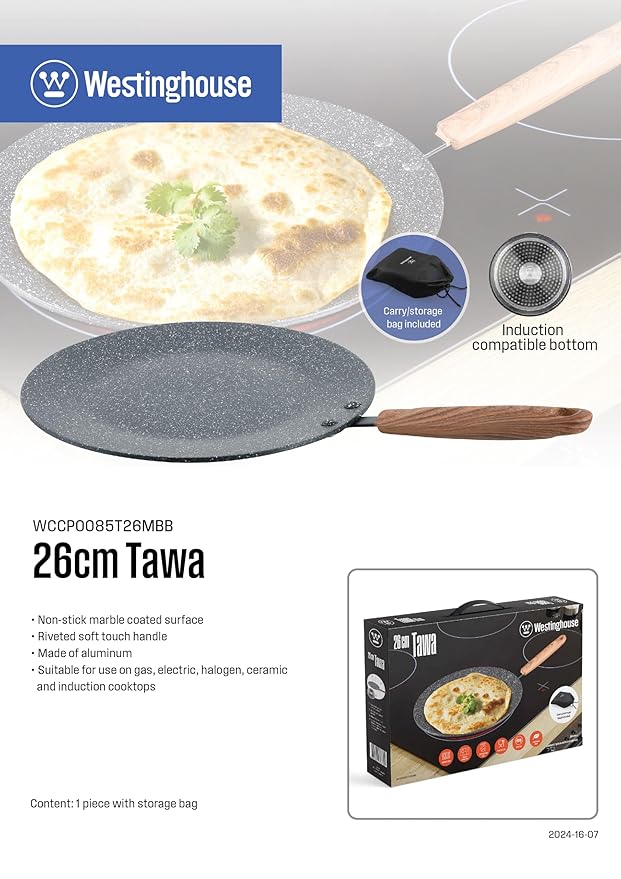 Energy Efficient & Quick Heating: Save time and energy with the Westinghouse Tawa’s excellent heat retention and quick heating capabilities. Spend less time waiting and more time enjoying your delicious meals.