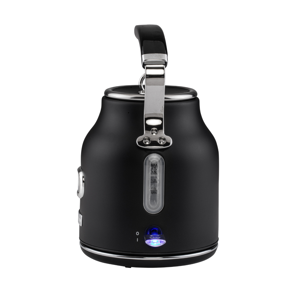 Retro Series Electric Kettle, the perfect way to make a delicious cup of tea or coffee. This stylish kettle features a 1.7 L stainless steel body that is both durable and easy to clean. The water level indicator lets you know exactly how much water is in the kettle, and the dry boil cut-off protection prevents the kettle from boiling dry, which can damage the kettle and create a fire hazard. The temperature gauge allows you to boil water to the perfect temperature for your favorite beverage, and the removable anti-scale water filter helps to reduce limescale buildup, which can make your water taste bad and