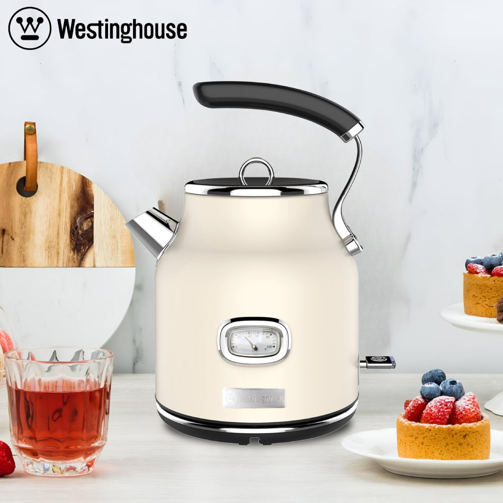 Retro look: this elegant kettle in retro style not only fulfils its function, but is also a real eye-catcher in the kitchen. It matches other Westinghouse retro devices.