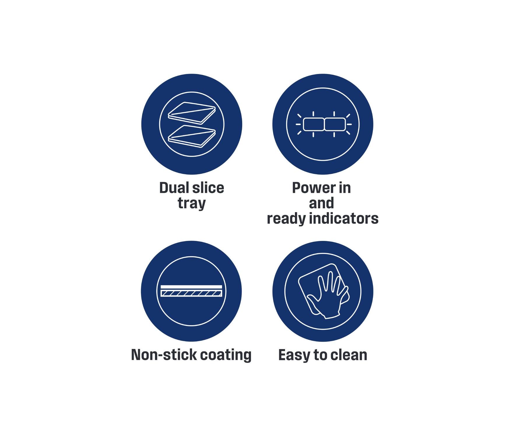 The clear power and ready indicators keep you informed when the sandwich maker is preheated and ready for use, making it easy to achieve consistent results. For added safety, the cool touch handles allow you to handle the appliance comfortably without the risk of burns.