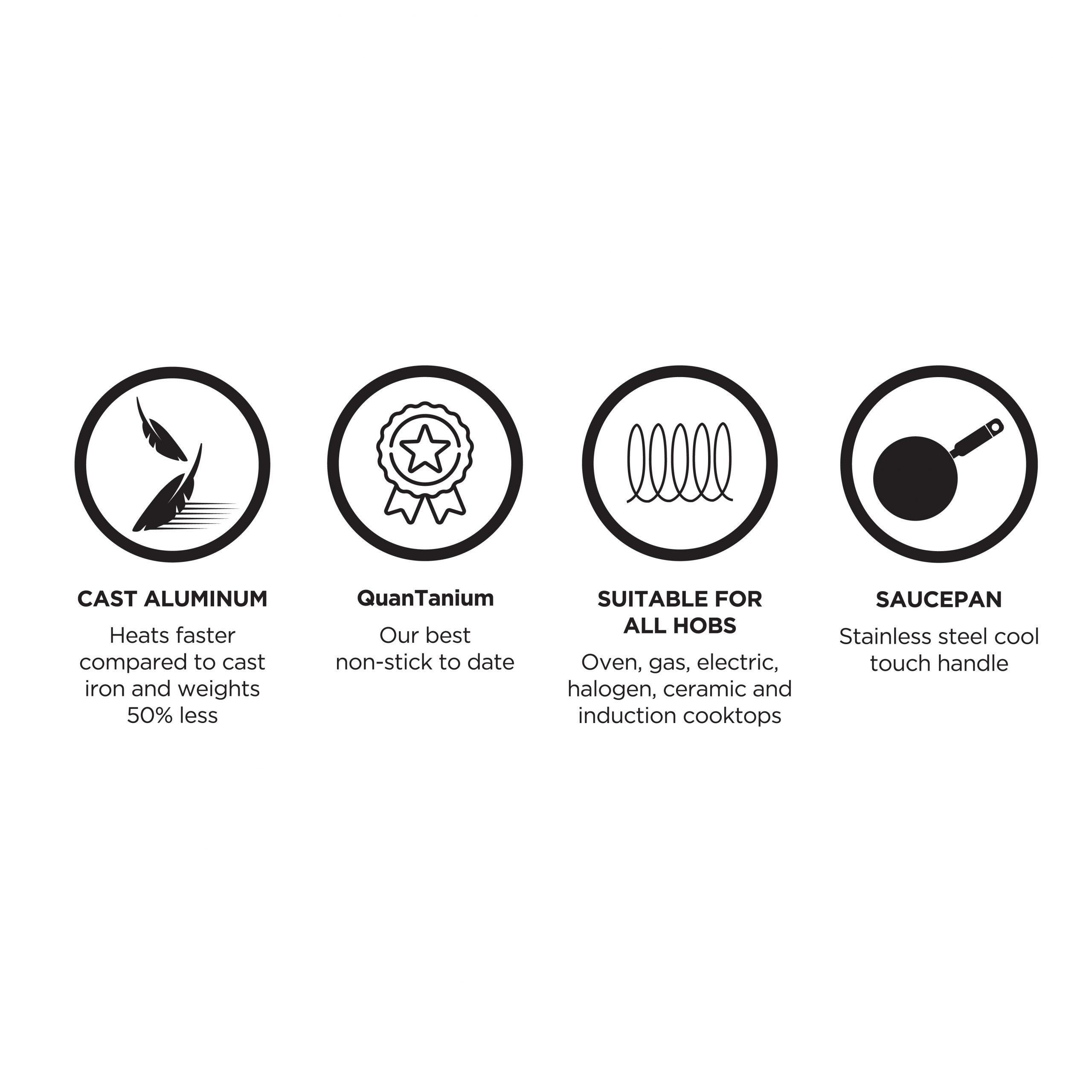 Thanks to the PFOA-free QuanTanium® non-stick coating, you can cook with peace of mind knowing no harmful toxins are released during use. This high-performance coating not only promotes healthier cooking but also makes the pans incredibly easy to clean—either by hand or in the dishwasher.