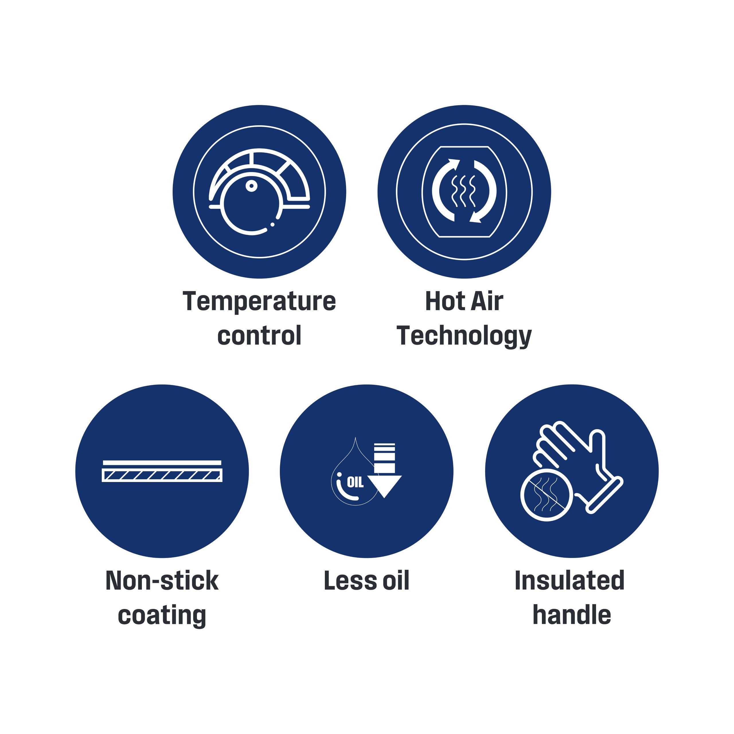 ADJUSTABLE TEMPERATURE CONTROL : Customize your cooking experience with a temperature range from 80-200°C. This versatility allows you to achieve the perfect level of crispiness for a wide range of dishes, from golden fries to tender roasted vegetables.