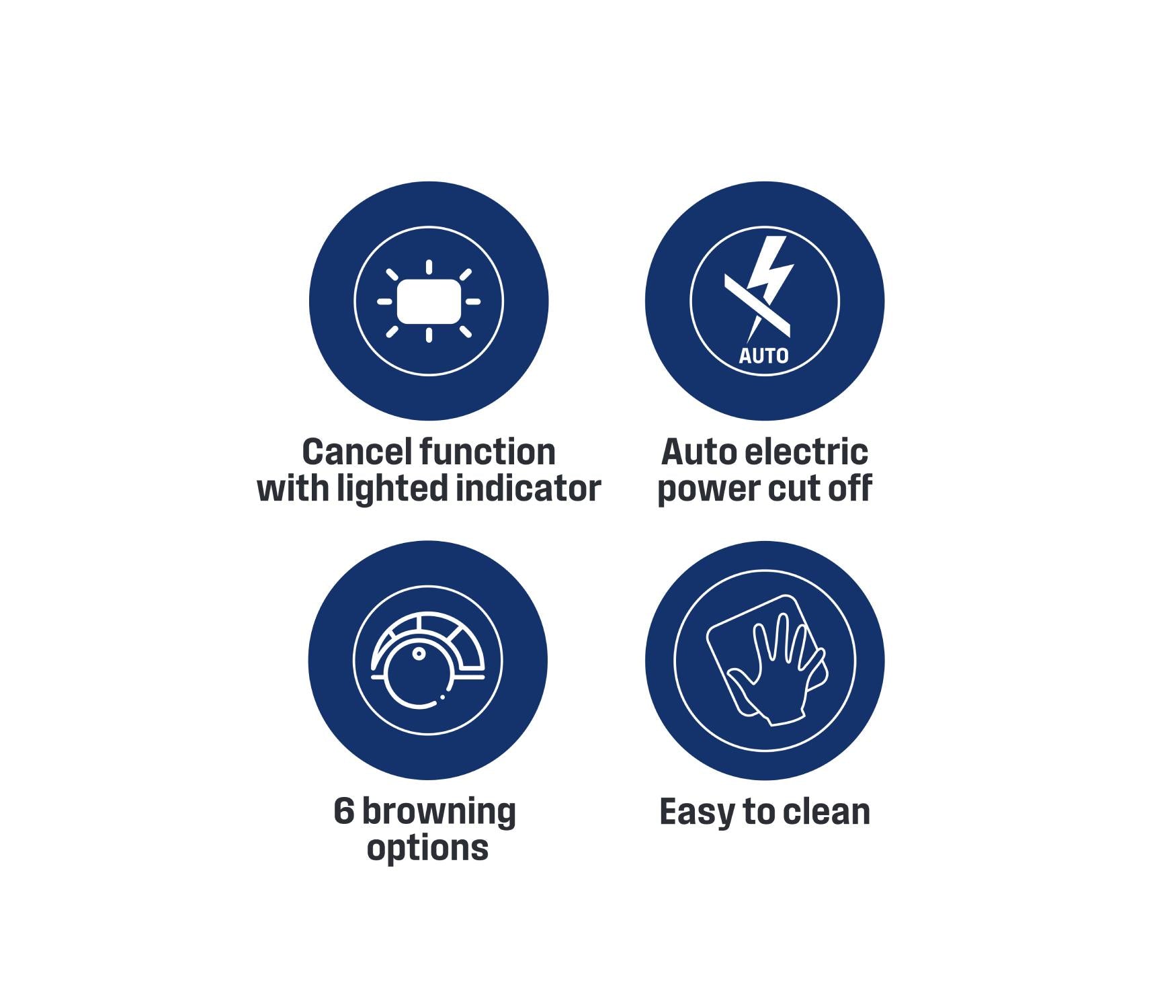 The browning control dial gives you total control over your breakfast, while the high-lift lever safely raises even the smallest slices, helping you avoid accidental burns. Need to stop mid-cycle? The illuminated cancel button lets you interrupt toasting at any time, giving you complete confidence and control.