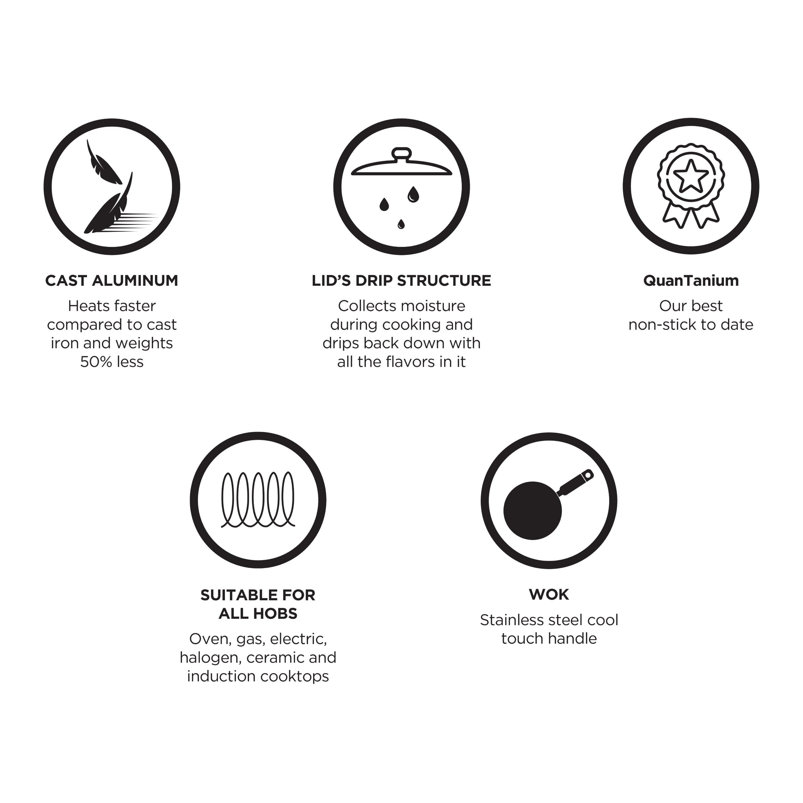 Designed with cool-touch stainless steel handles and made from lightweight materials, it’s easy to handle and move around the kitchen. The pan offers excellent heat distribution and features a PFOA-free QuanTanium® non-stick coating that’s safe, toxin-free, and easy to clean.